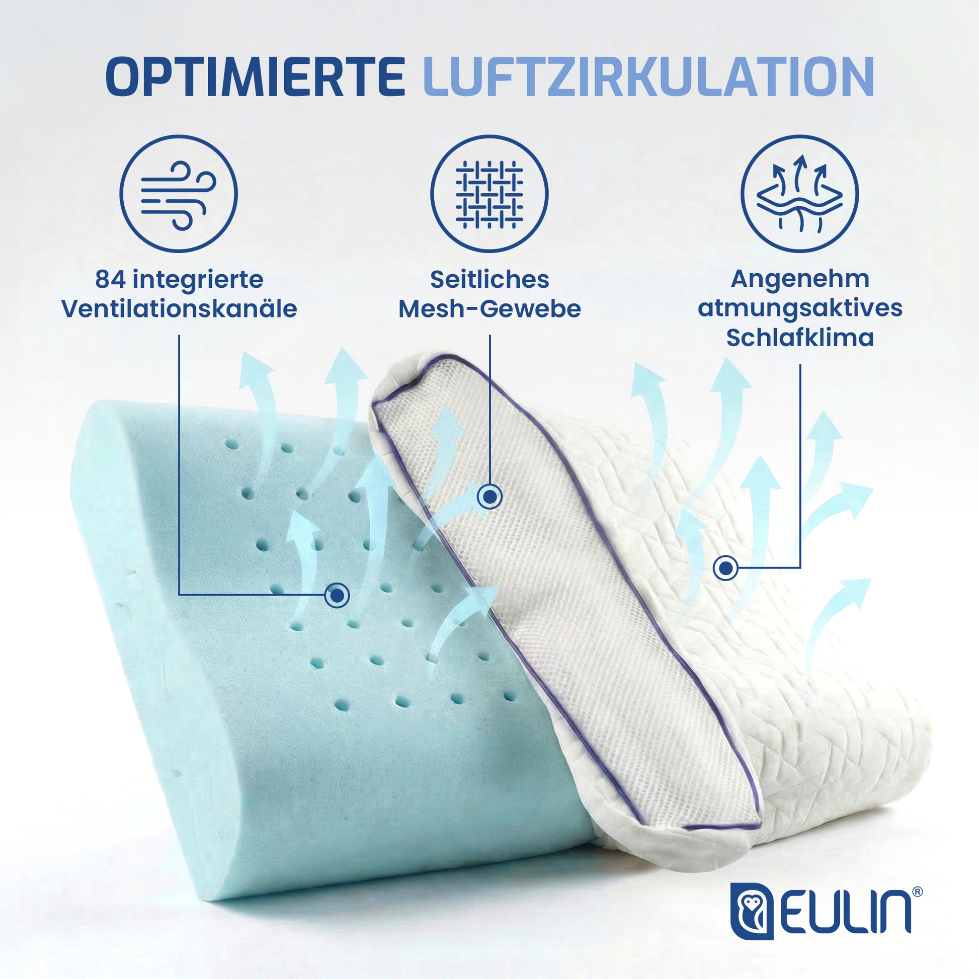 EULIN® WOLKENFELD AIR Orthopädisches Kopfkissen 40×60 cm – Höhenverstellbares Nackenstützkissen aus Memory Foam | Ergonomisch & Atmungsaktiv
